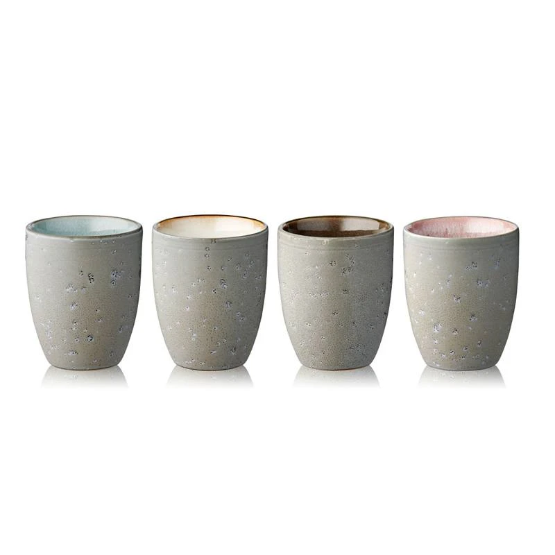 4 stk Bitz termokrus med matgrå yderside oglyseblå, pink, grå og cremefarvetinderside.