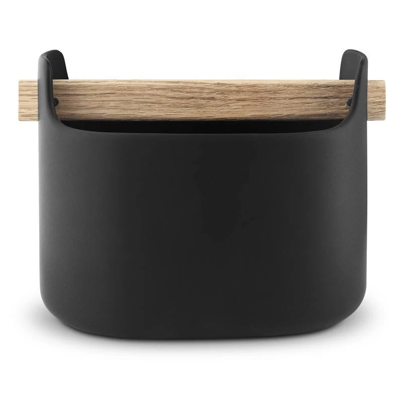 Den lave model på 15 cm er oplagt til at holde styr på opvaskebørste, karklud mv i køkkenet eller til blyanter og tusser på arbejdsbordet. Kan også anvendes ved middagsbordet som bestik- og servietholder.