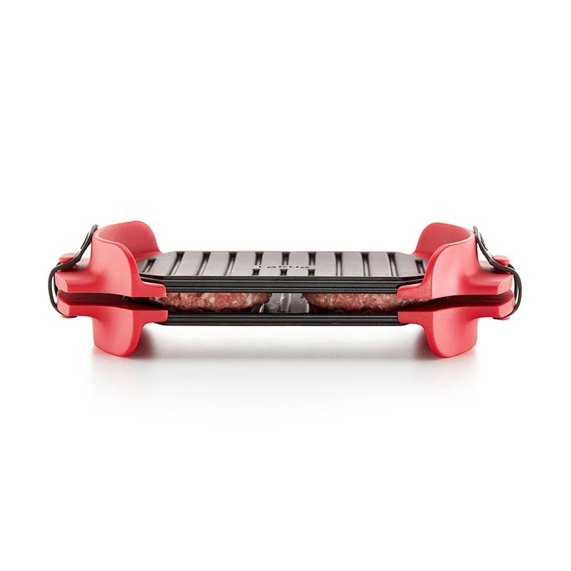 Lekue grillen der passer til mikroovn er let at anvende. Placer det du ønsker grillet mellem de to plader og tænd mikroovnen.