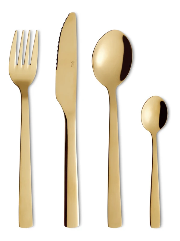 Pynt dit bord med gyldne toner og indbyd dine gæster til et veldækket bord. Bestiksættet passer også perfekt til at pifte hverdagen op – det tåler nemlig maskinopvask