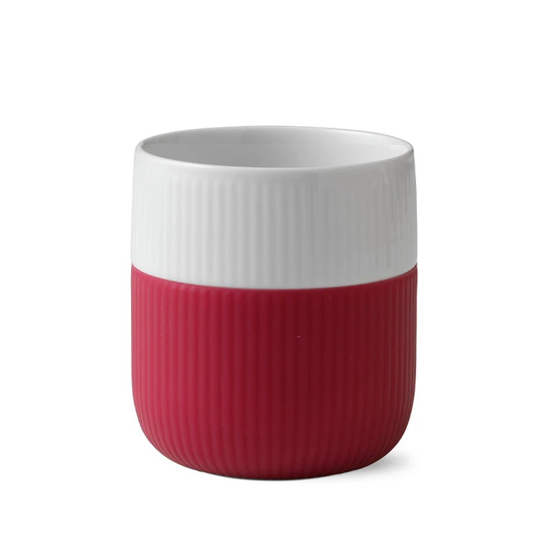 Et flot og praktisk krus, når der skal hygges med en kop varm te, kaffe eller kakao. Den praktiske og bløde silikone gør kruset nemt at holde om – og holde af. Kruset kan også benyttes til kolde drikke eller anretning af en skøn dessert, hvis man er mere til det. Contrast-serien indeholder krus i spraglede og kontrastfyldte farver, så du let kan mixe og matche, som det passer dig. Kruset kan sprede humør ved bordet eller give lidt ekstra farve på køkkenhylden. Det anbefales at tage silikonen af inden kruset vaskes. Både krus og silikone kan tåle opvaskemaskine.