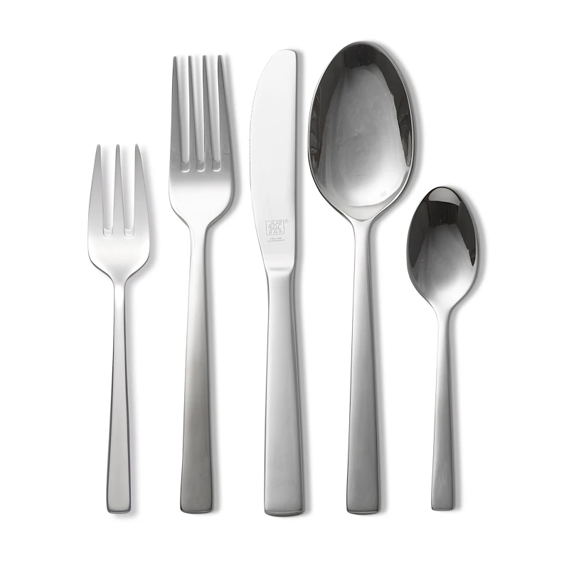 Zwilling Loft bestik er en klassisk bestikserie, der aldrig går af mode med sit enkelte og stilrene look, kan dette bestik bruges til hverdag og til fest igennem hele livet. Bestikæsken består af 6 spiseskeer, gafler, knive, teskeer og kagegafler – så der er alt, hvad du har brug for i det daglige. Fremstillet i 18/10 rustfrit stål og tåler opvaskemaskine.